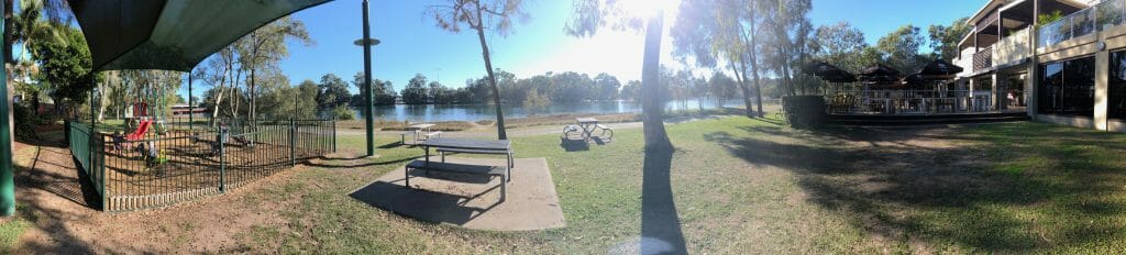There are toilets inside the RSL if you are dining there and if not you can walk along the creek to the public toilets next to the tennis courts. The playground is covered by a shade sail and has a picnic table right next to the fence with a great tree shaded grassed area.
